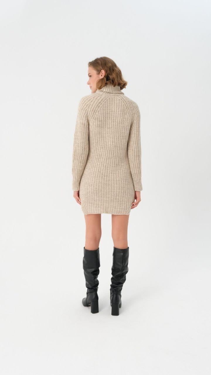 التصميم: فستان قصير بحياكة يدوية وقصّة مريحة تناسب جميع الأجسام، مثالية لتنسيقها مع بناطيل جينز أو فساتين خفيفة في الأيام الباردة.