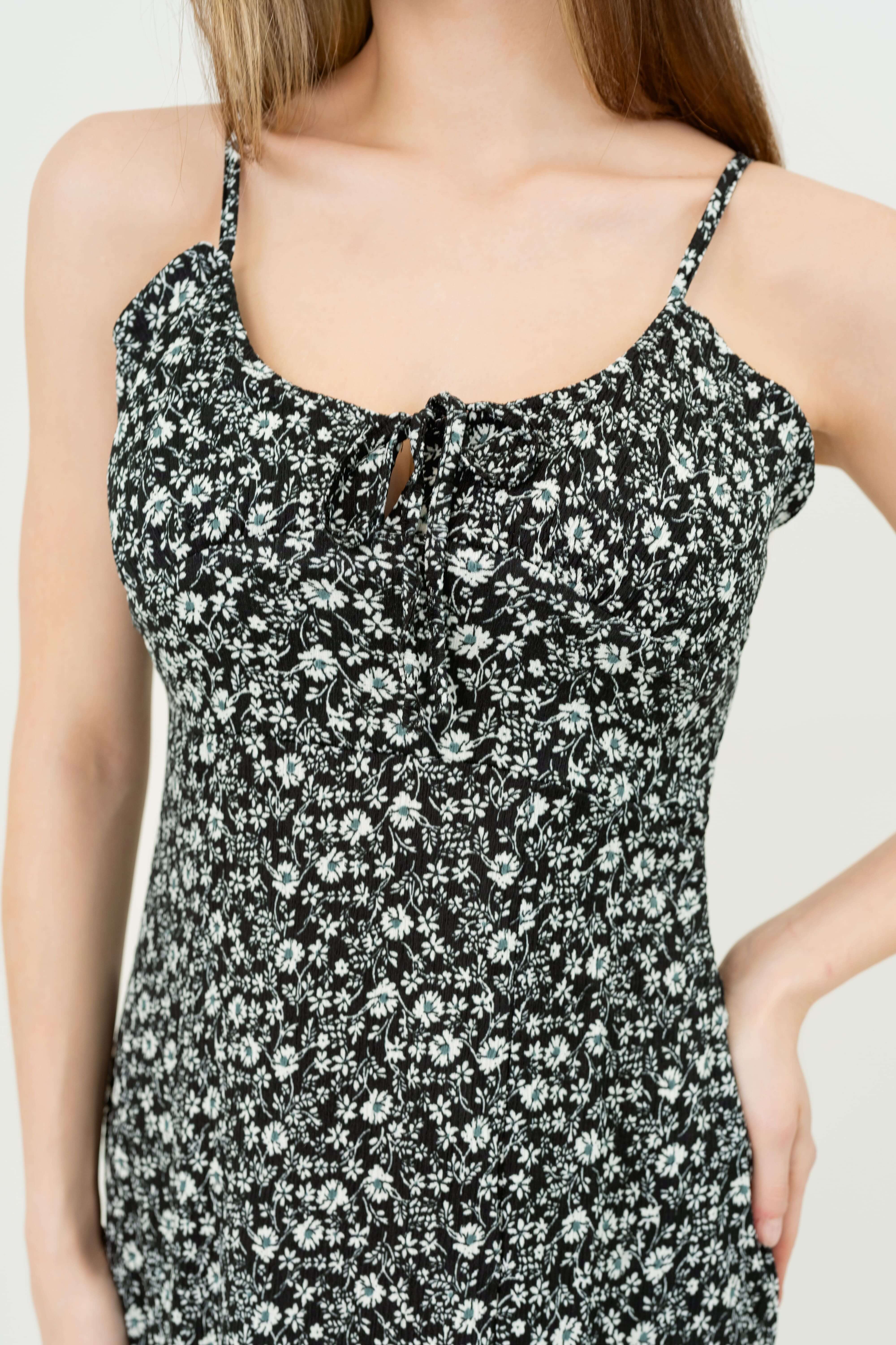 التصميم: فستان يتميز بطبعة ورود بتصميم كلاسيكي انثوي