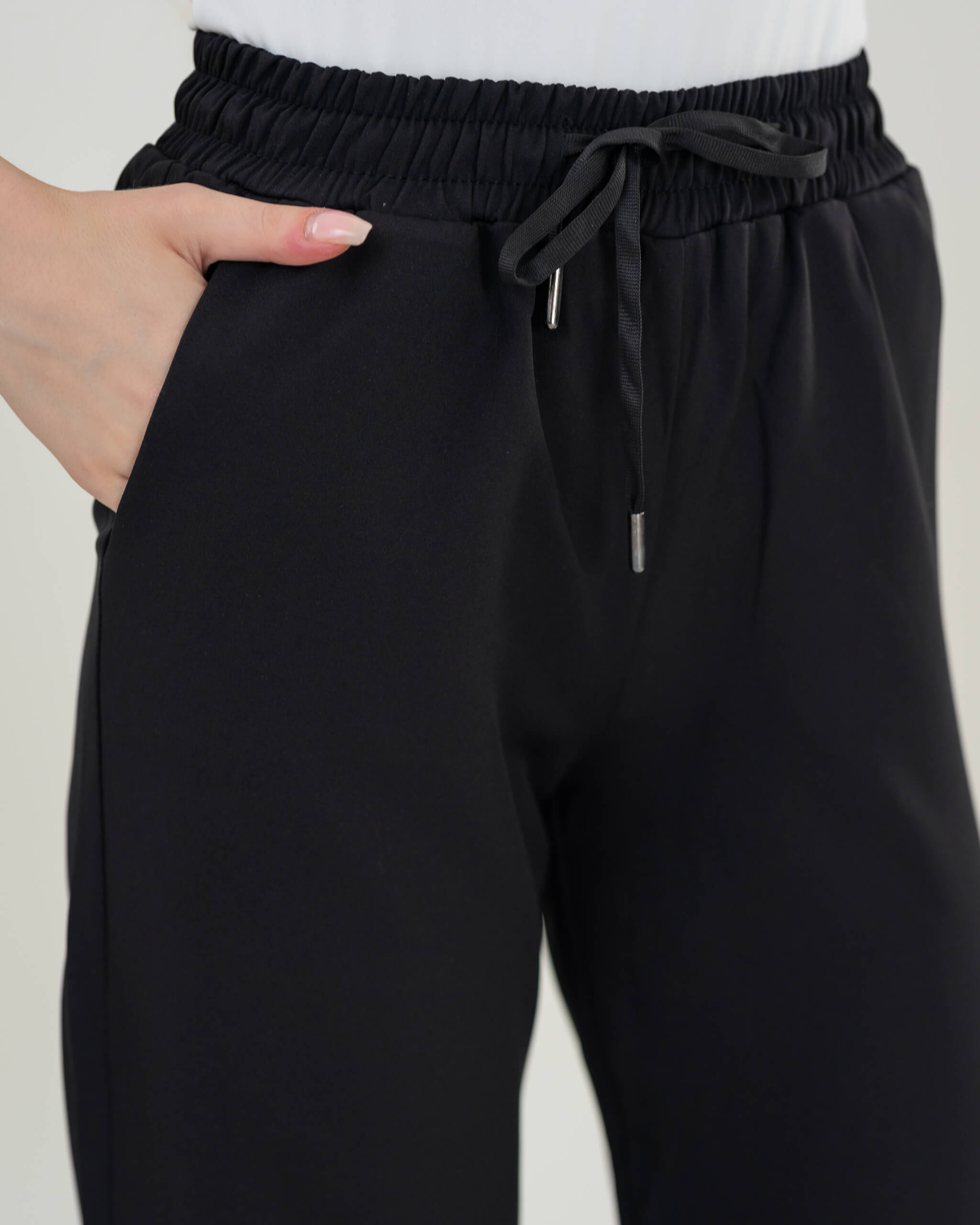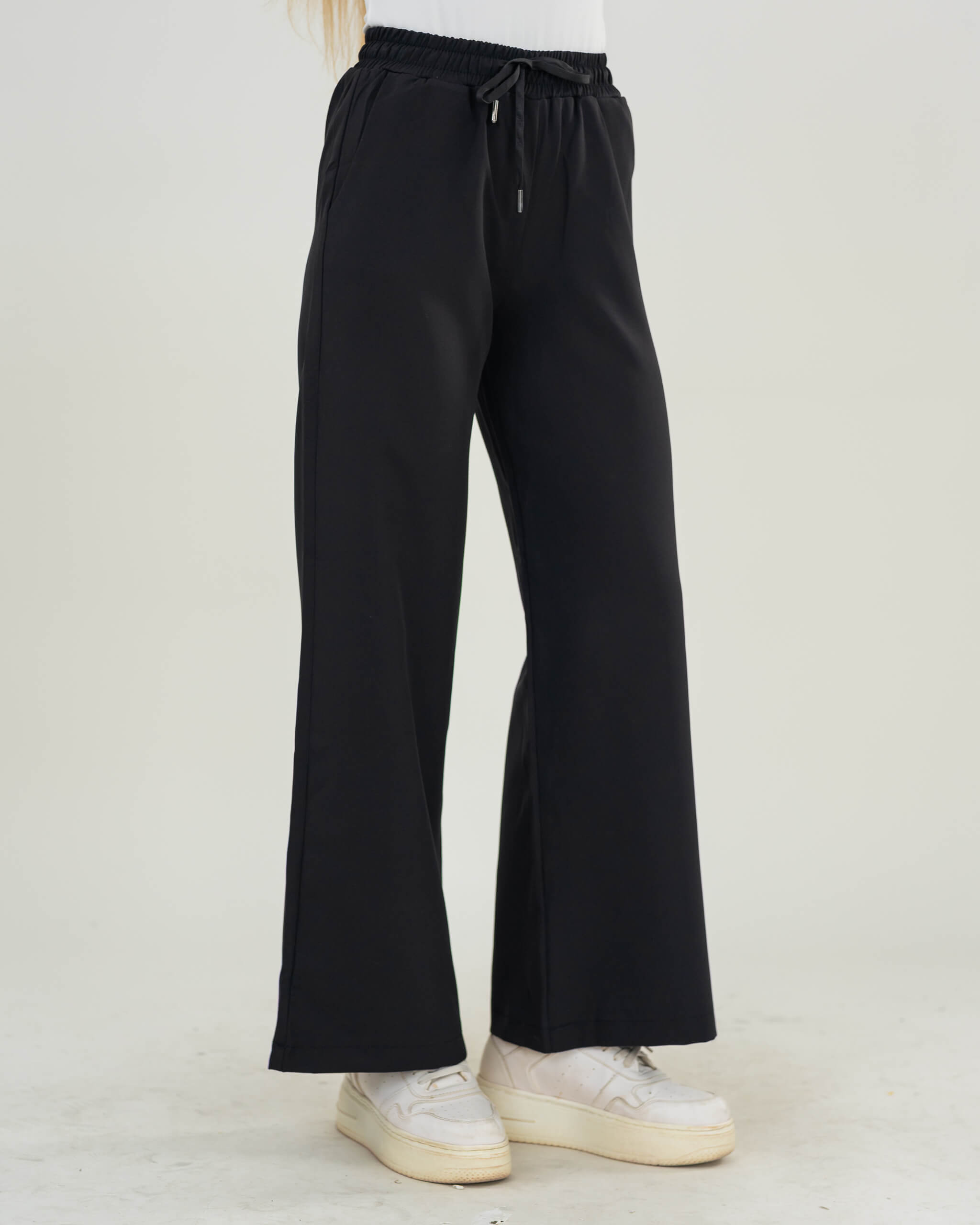 التصميم: بنطلون قماش - اوفر سايز - رباط من الخصر