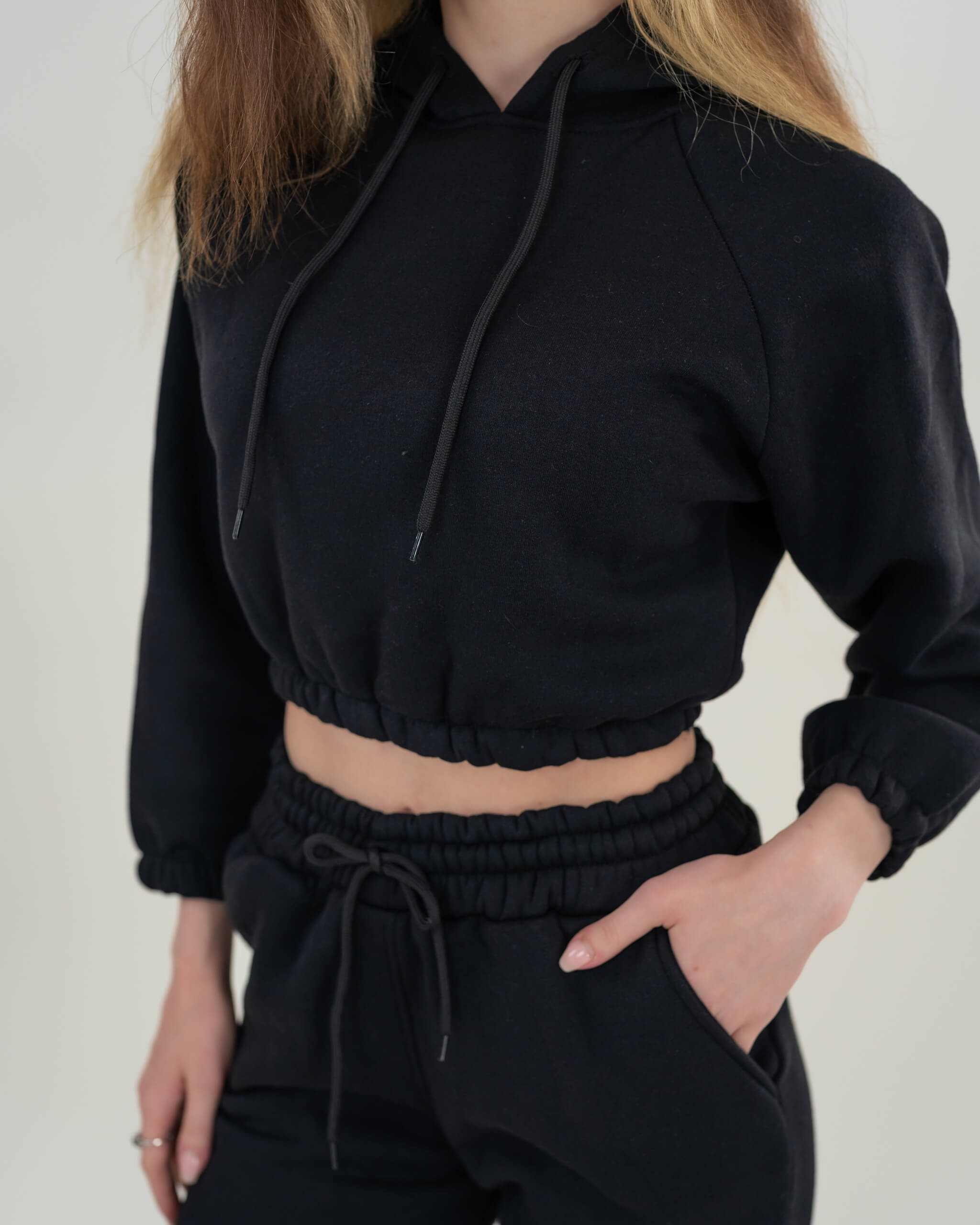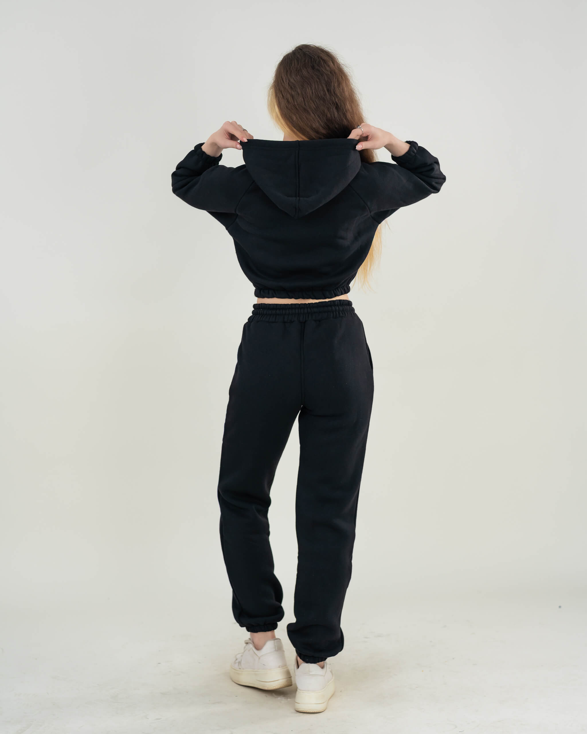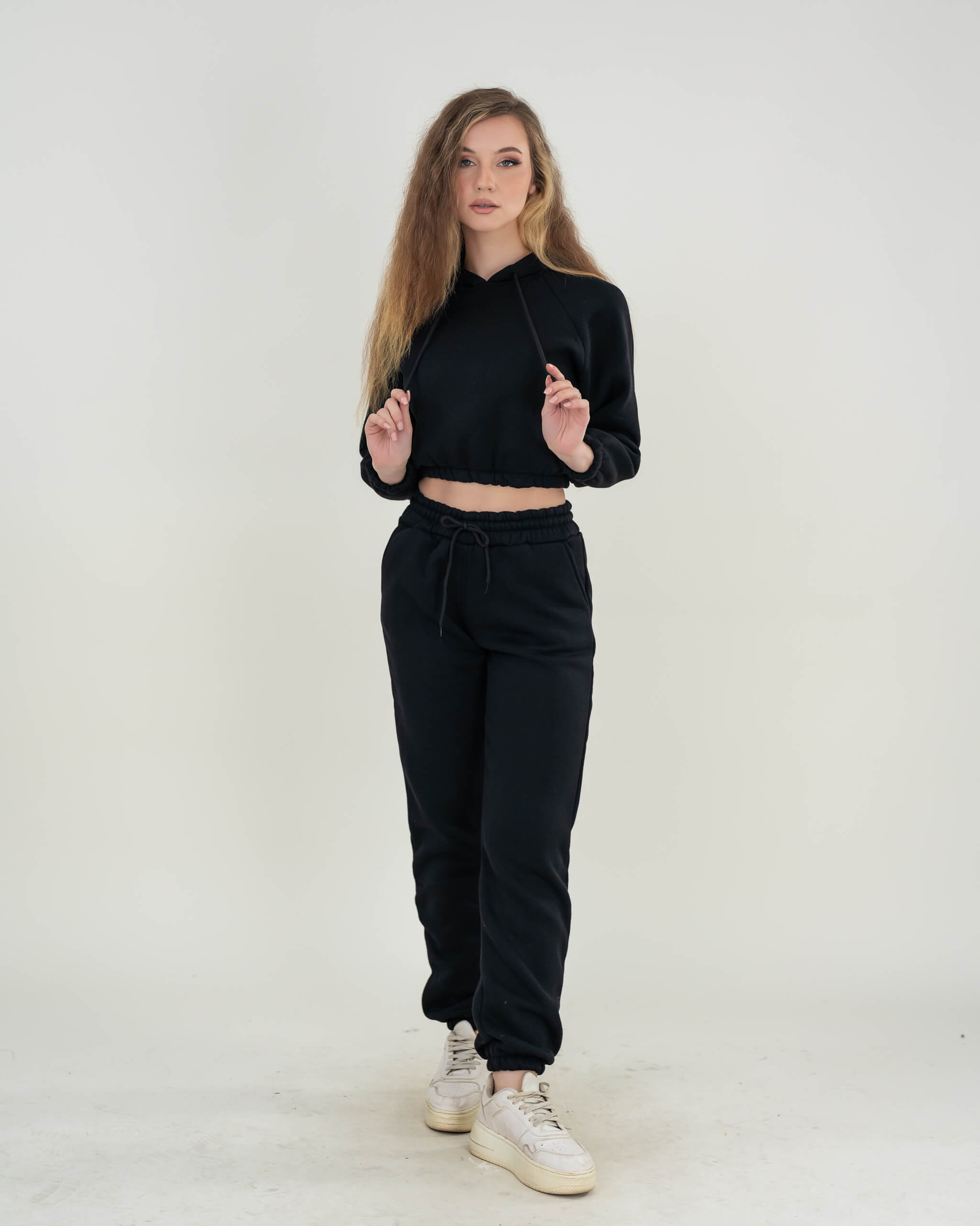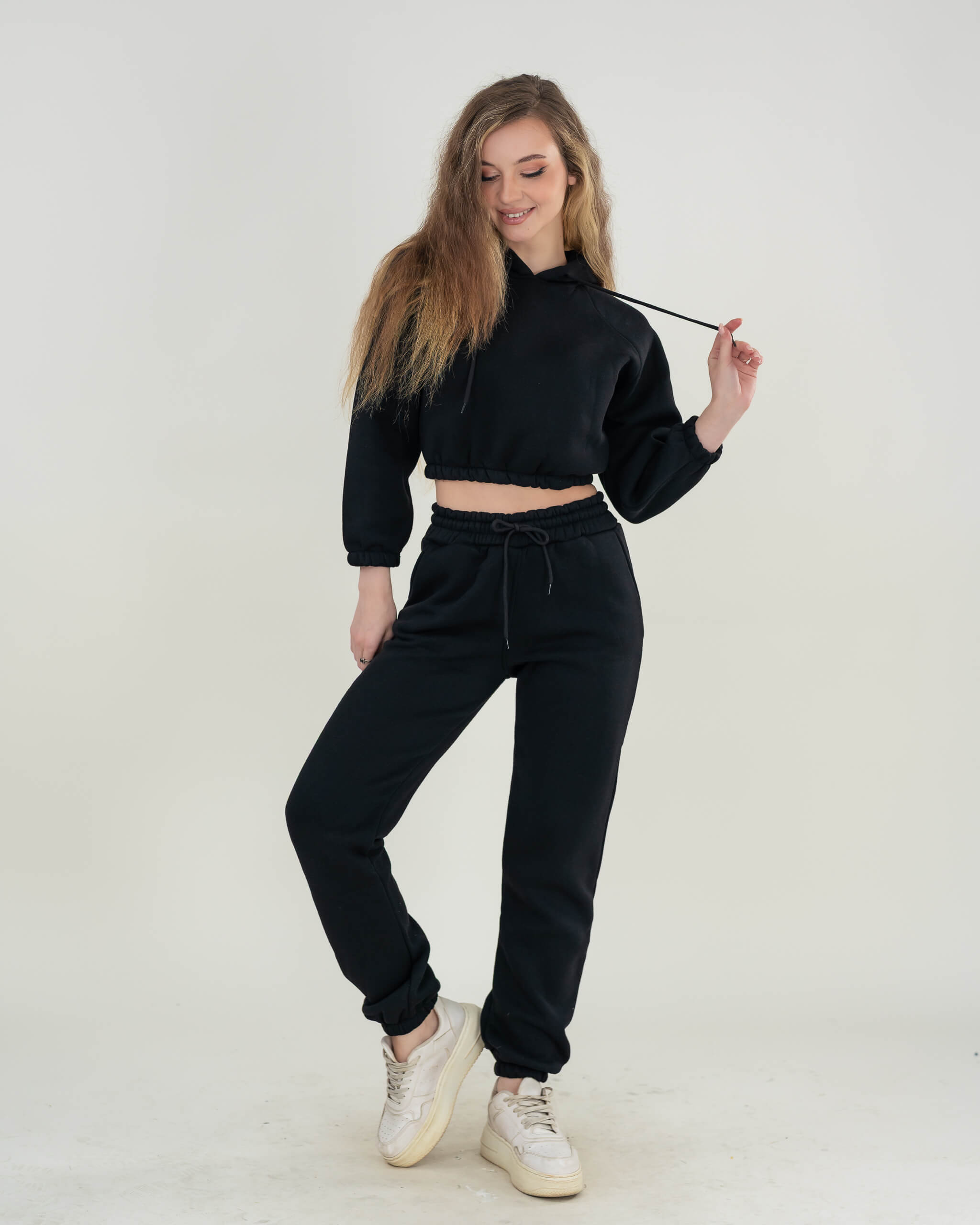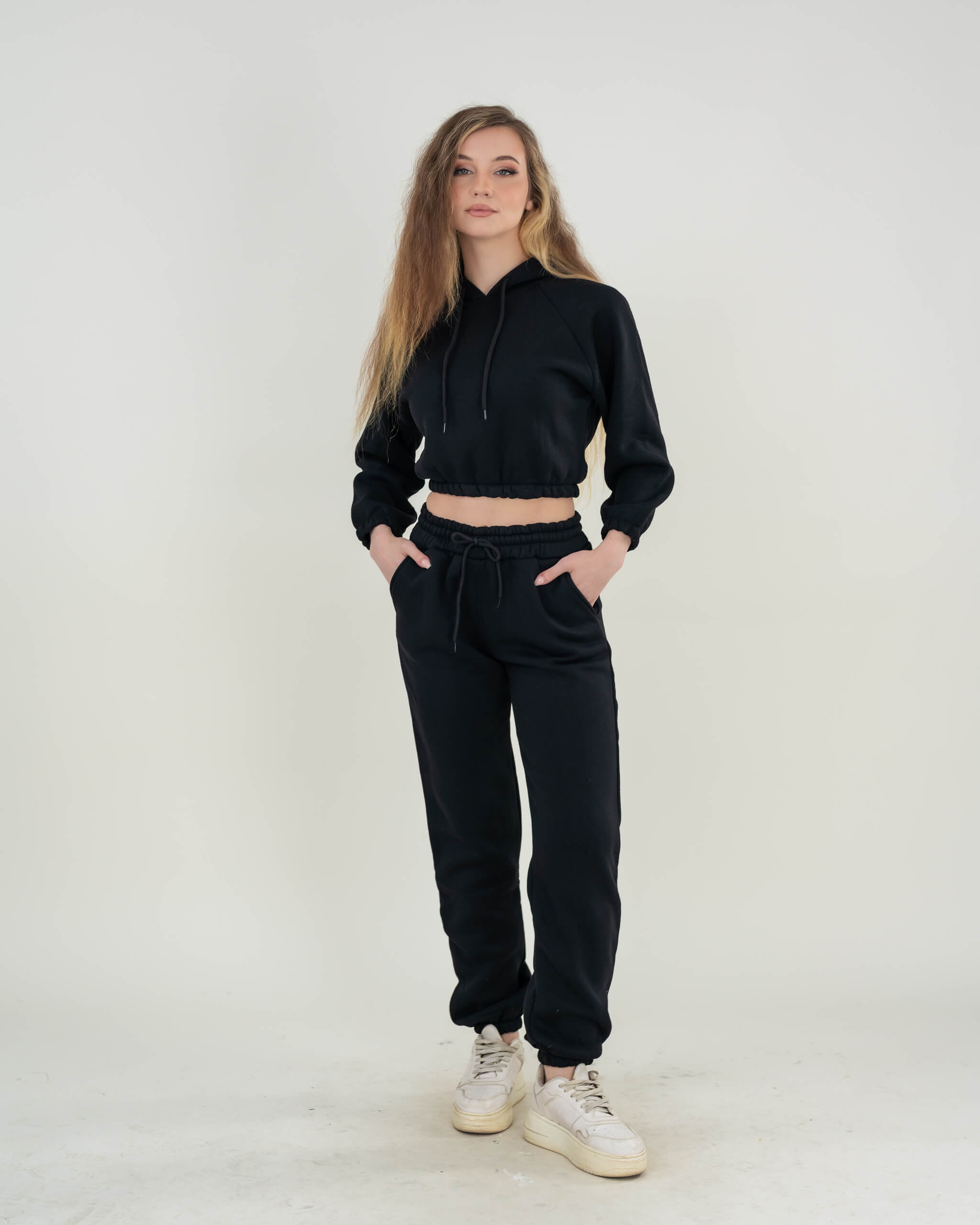 يأتي الطقم بلون أسود كلاسيكي سهل التنسيق مع مختلف القطع، ويتميّز بخامته الدافئة والمريحة اللي تخليكِ مستعدة لأي طقس.