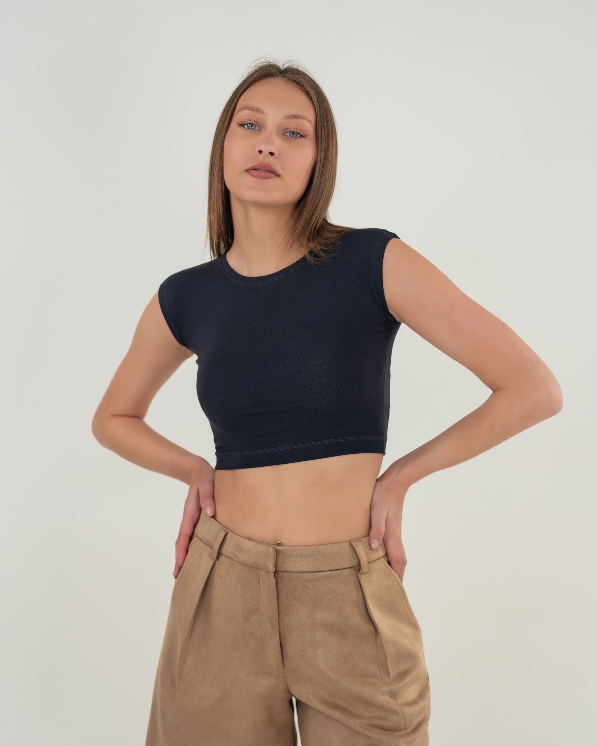 التصميم: بلوزة قصيرة -سادة - أكتاف عريضة