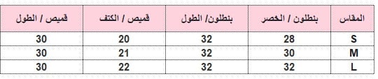 الطقم مصنوع من خامات عالية الجودة توفر لك الراحة والمتانة، ويمكن ارتداؤه في مختلف الأوقات.