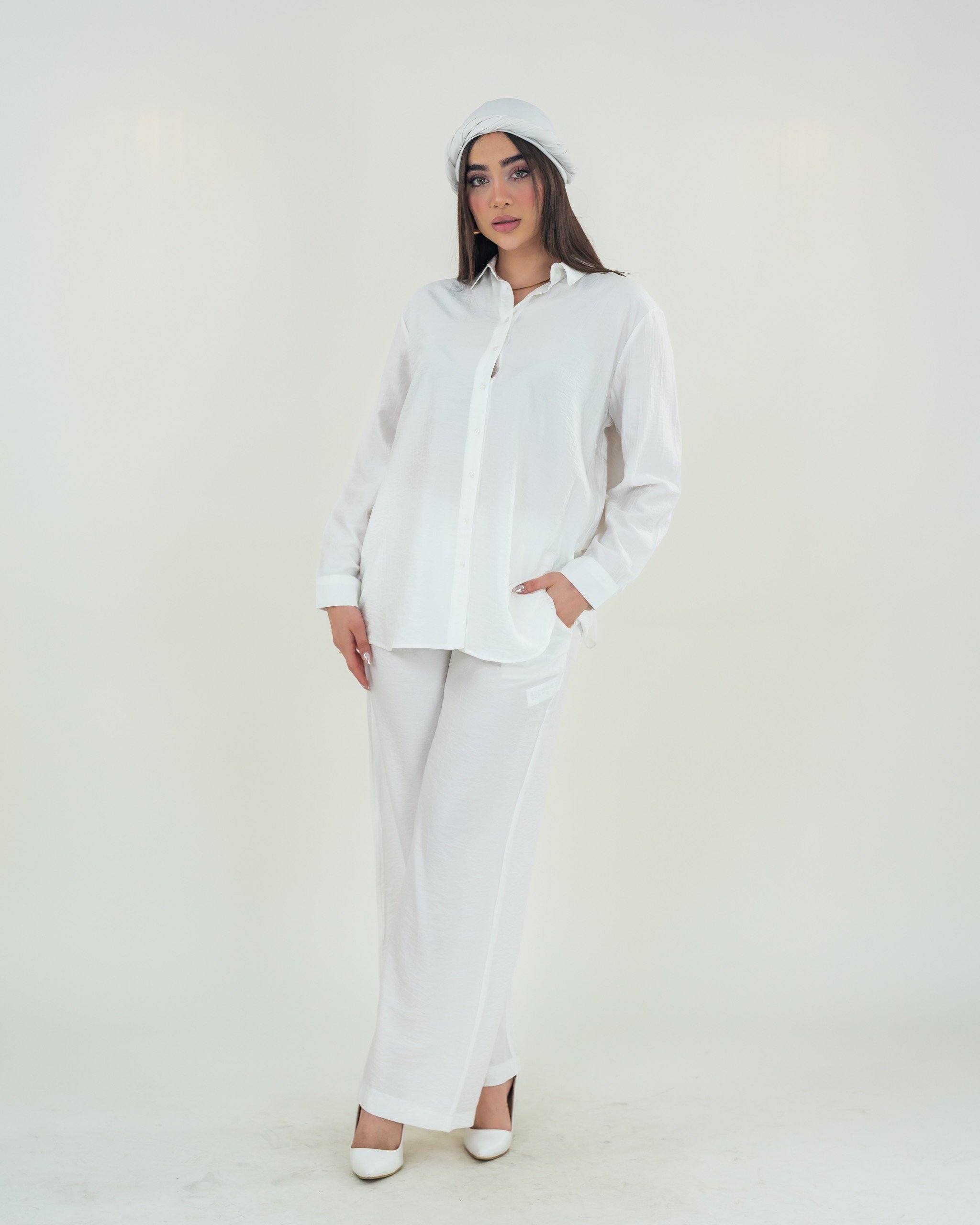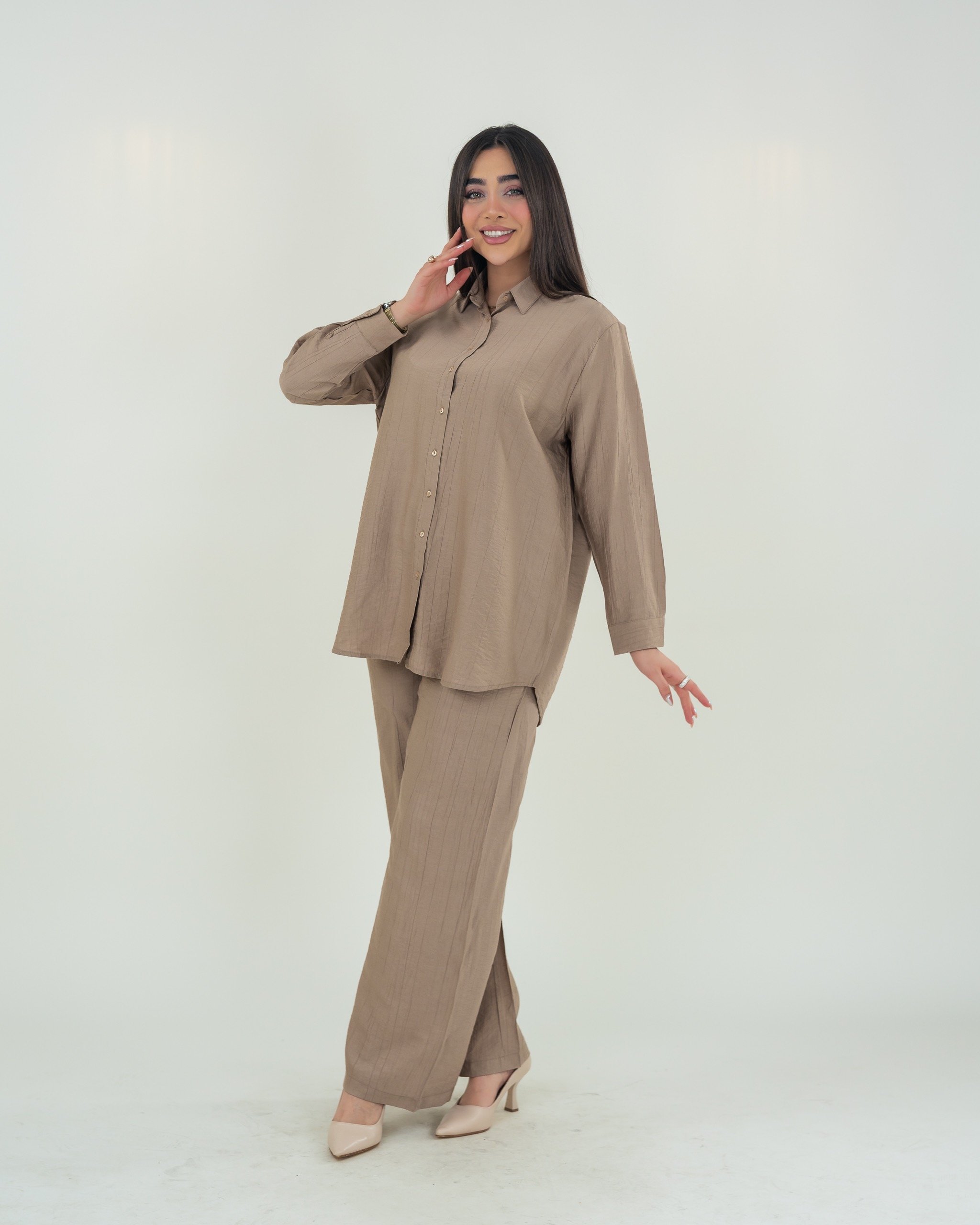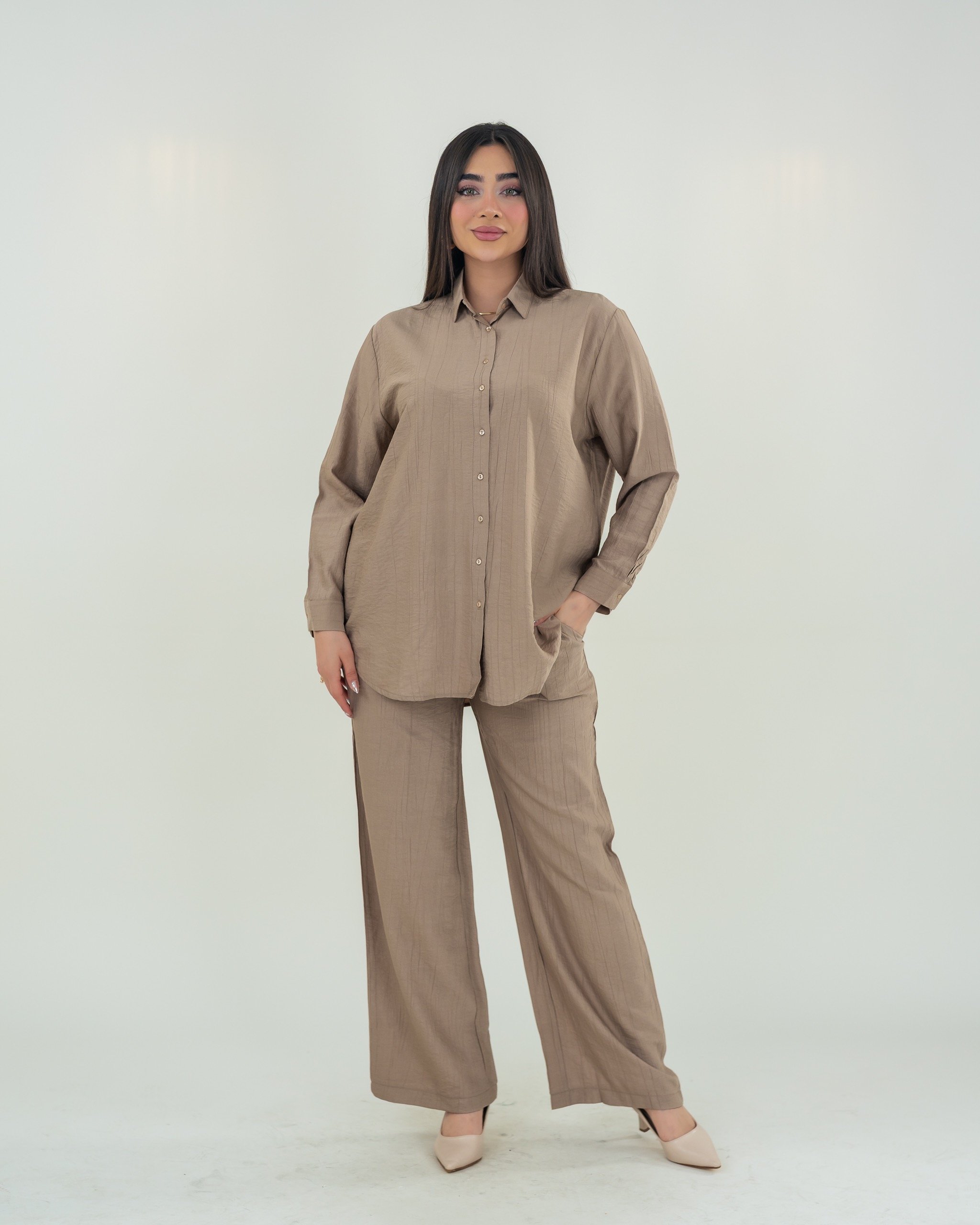 طقم كاجوال طويل واسع للنساء يتميز بتصميم عصري ومريح، يتيح لك الحرية التامة في الحركة بينما يحافظ على أناقتك في كل الأوقات.