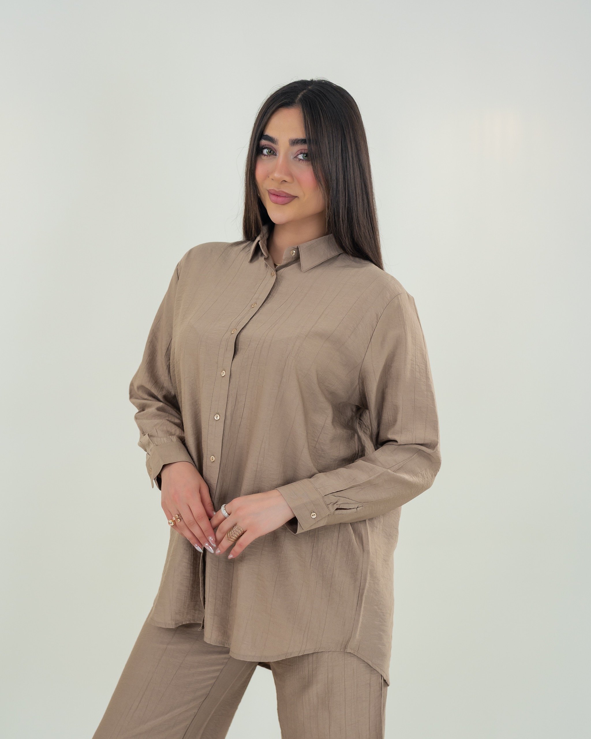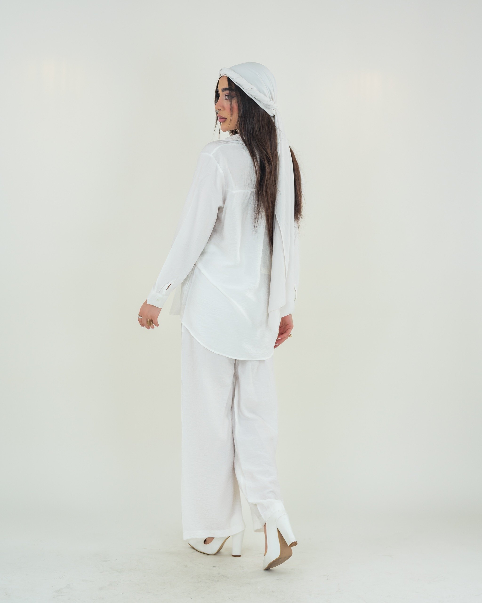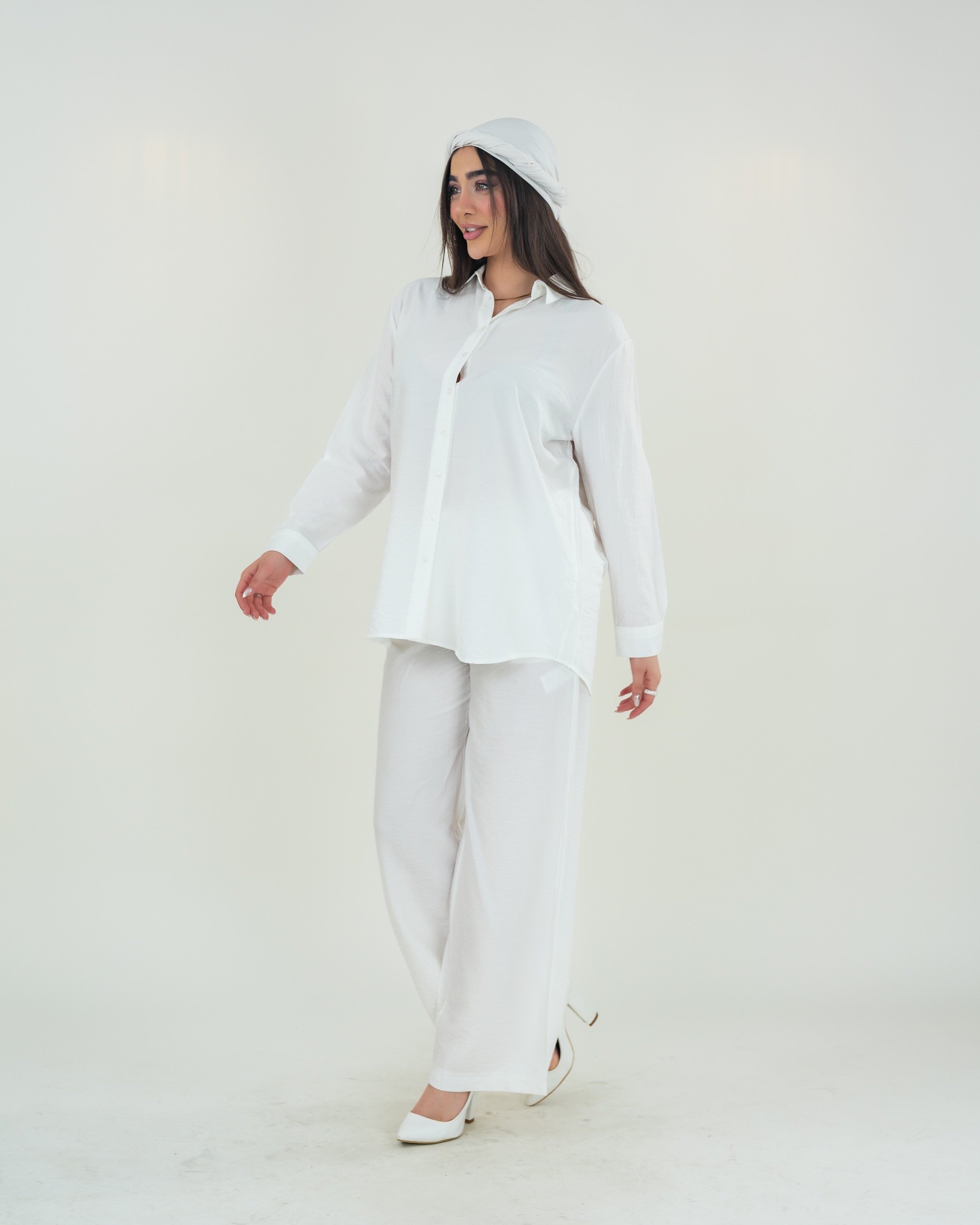 طقم كاجوال طويل واسع للنساء يتميز بتصميم عصري ومريح، يتيح لك الحرية التامة في الحركة بينما يحافظ على أناقتك في كل الأوقات.