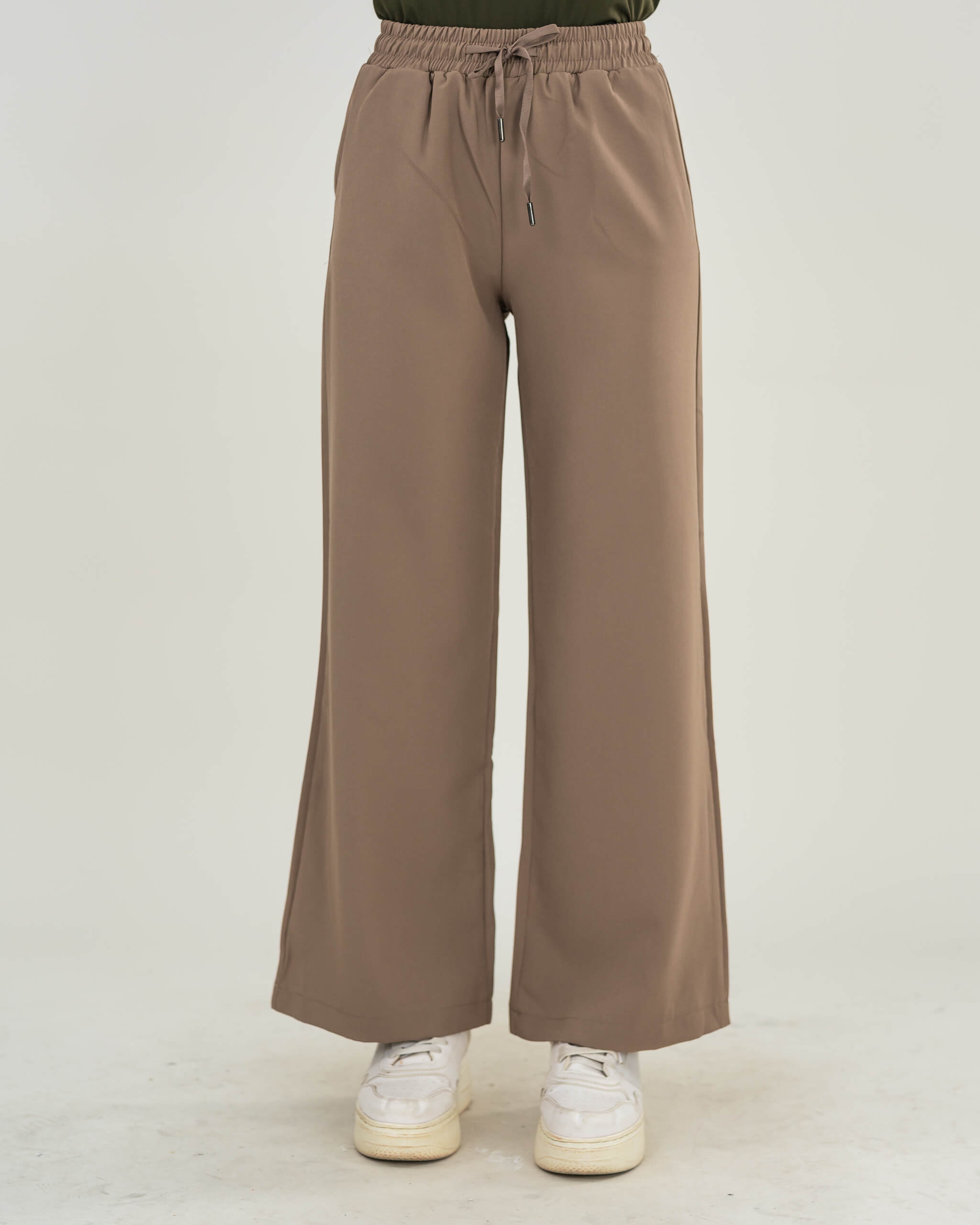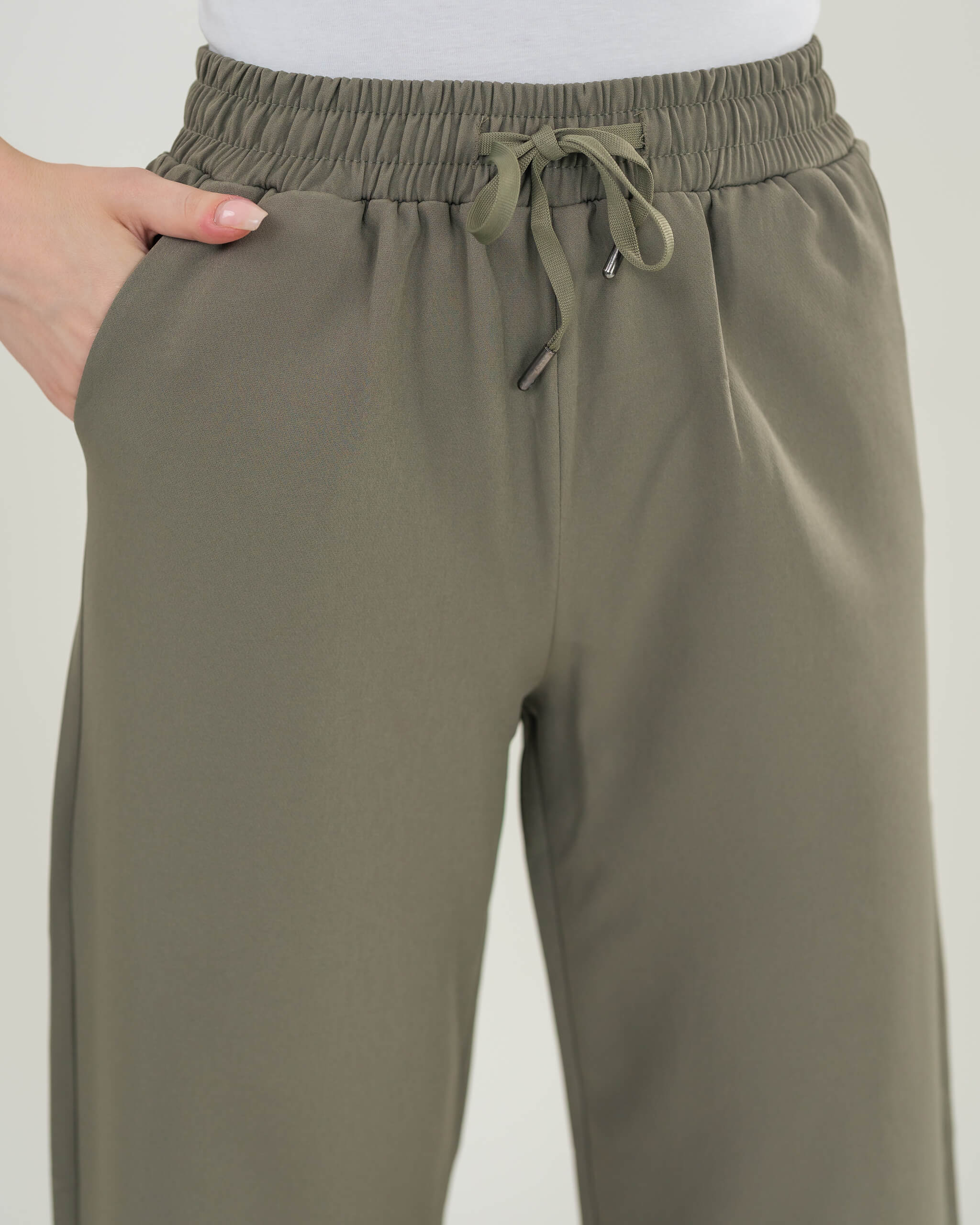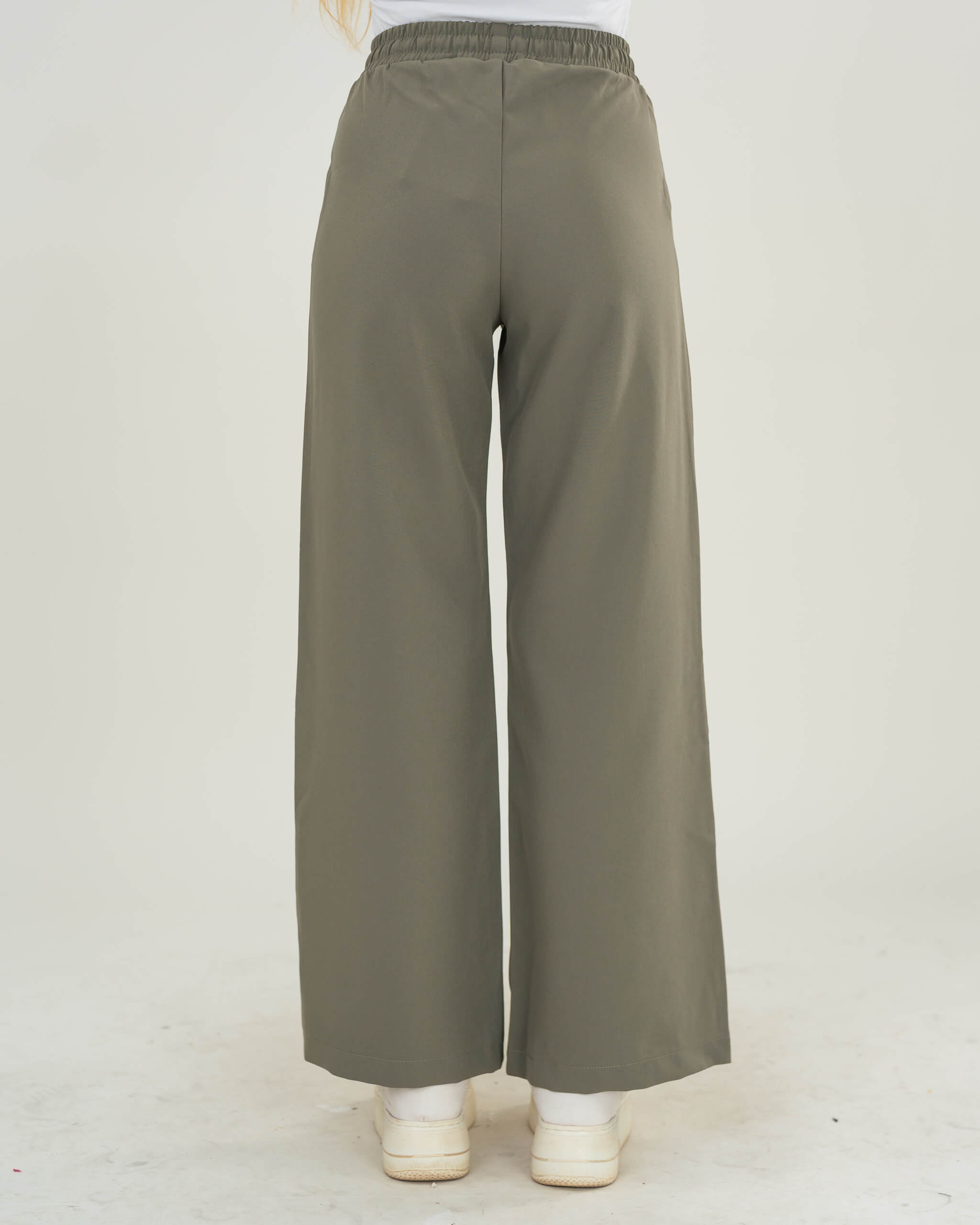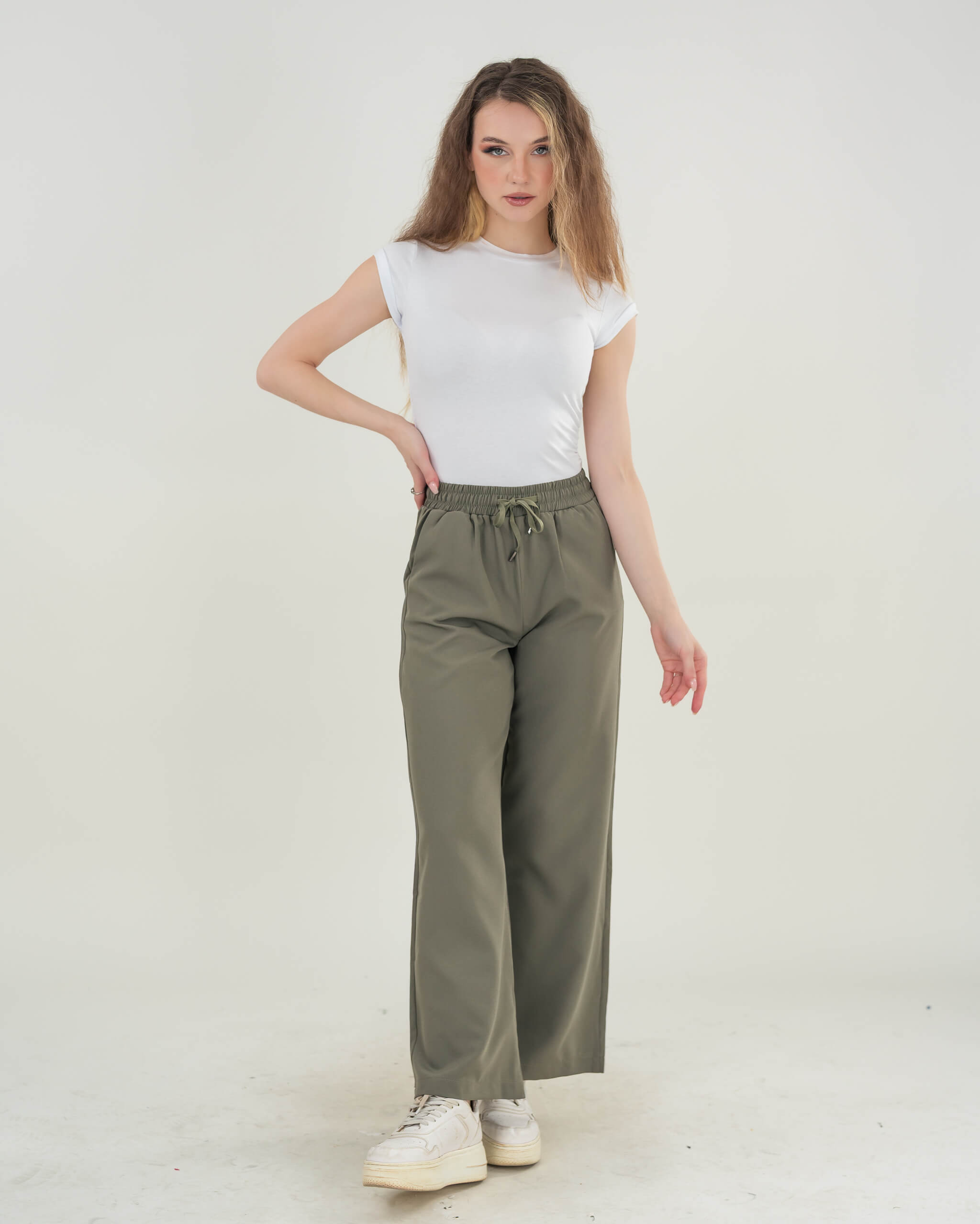 وصف المنتج:بنطلون قماش واسع بتصميم أوفر سايز مريح ومواكب للموضة، مزوّد برباط عند الخصر لتعديل المقاس بسهولة.