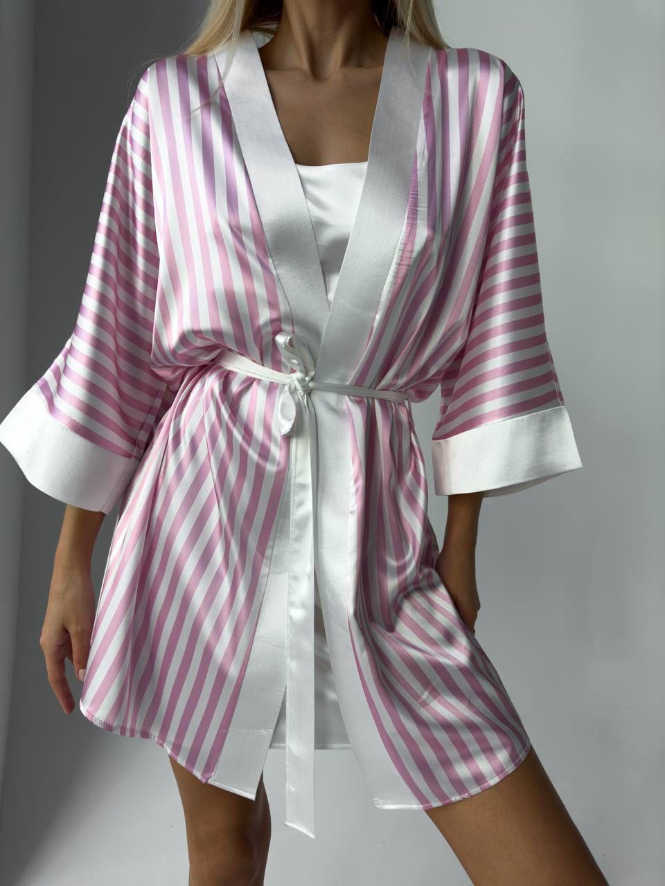 دلّلي نفسك بإطلالة ناعمة وأنثوية مع قميص نوم مع روب أنيق بلون وردي هادئ.