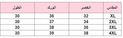 المقاسات المتوفرة: XL - 2XL - 3XL - 4XL