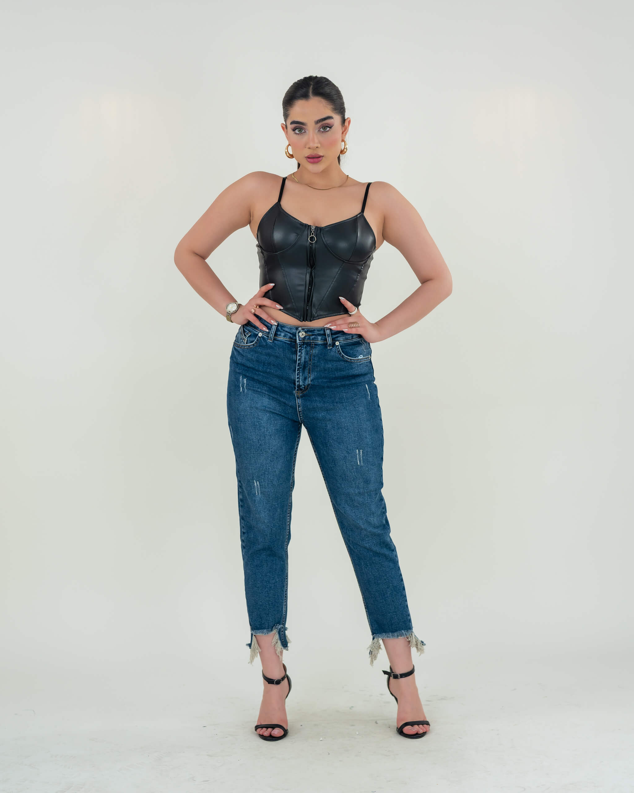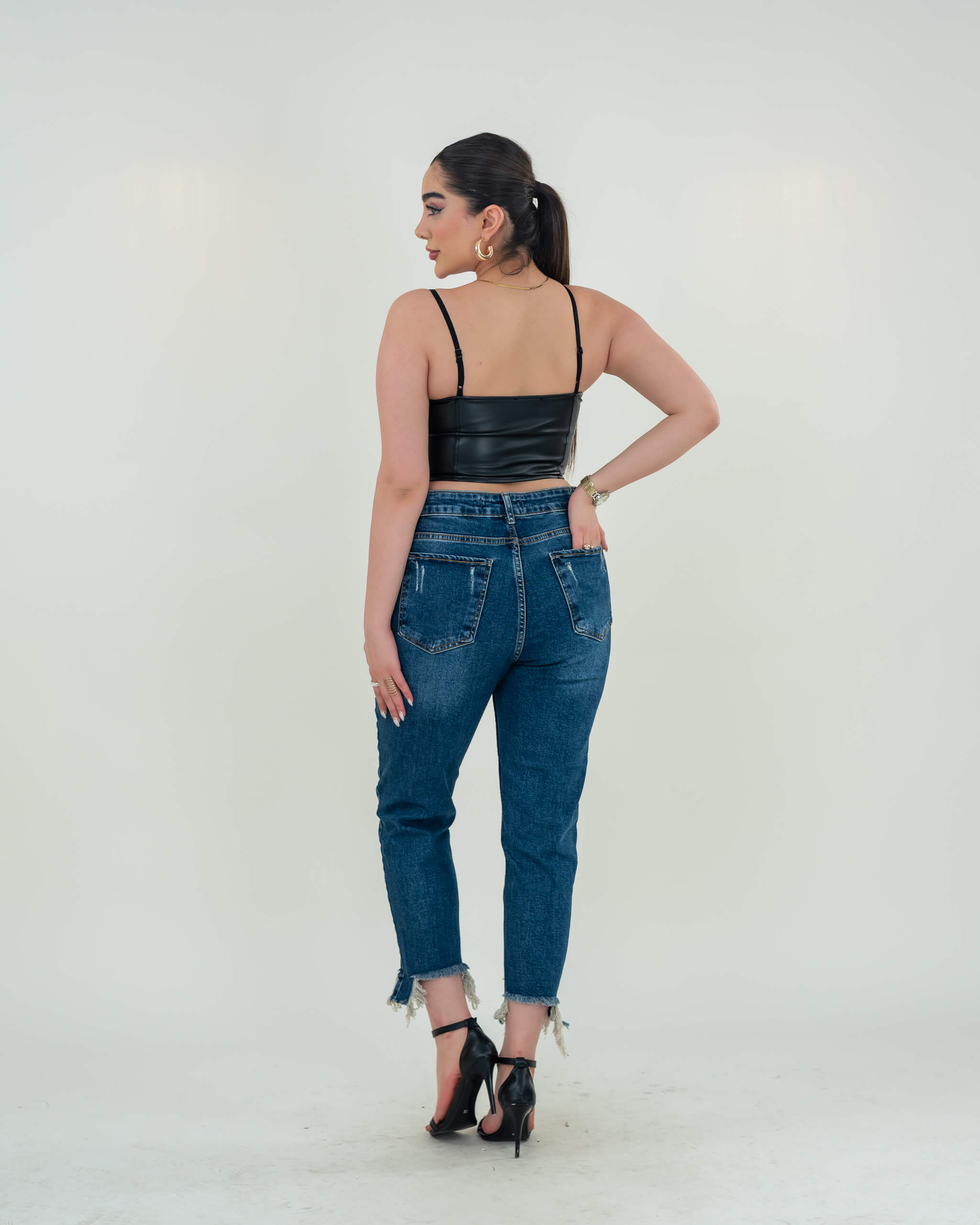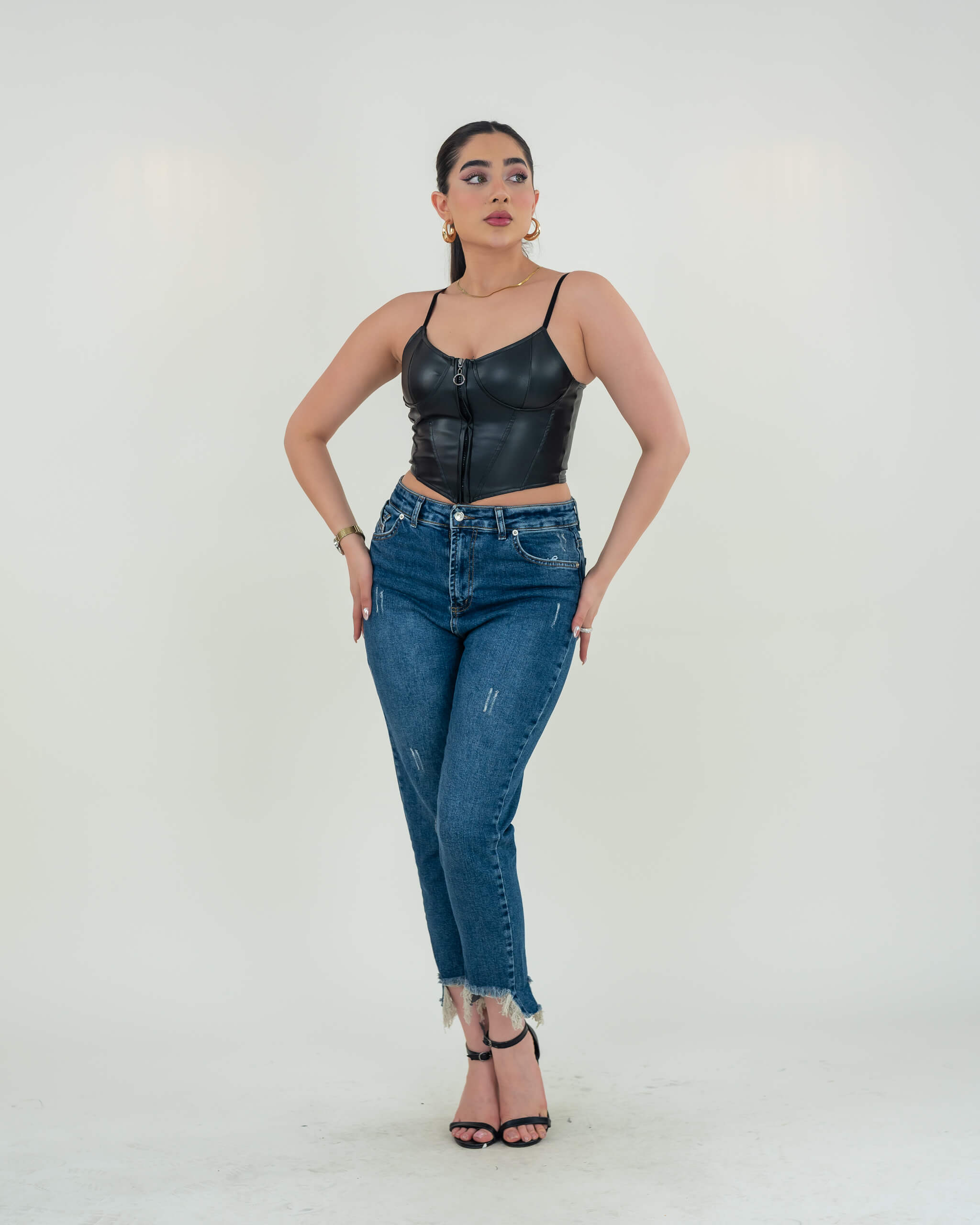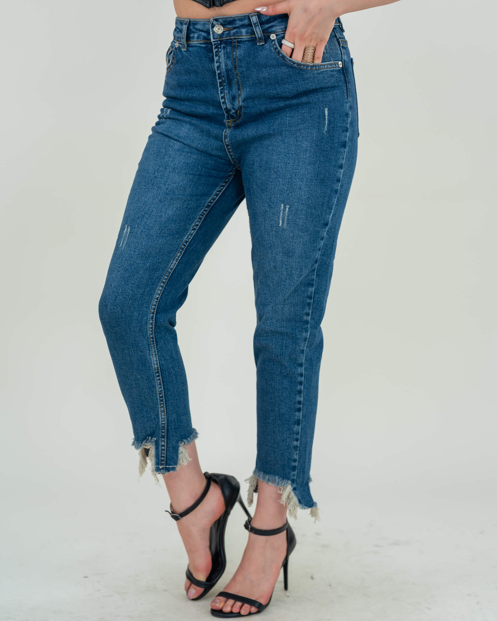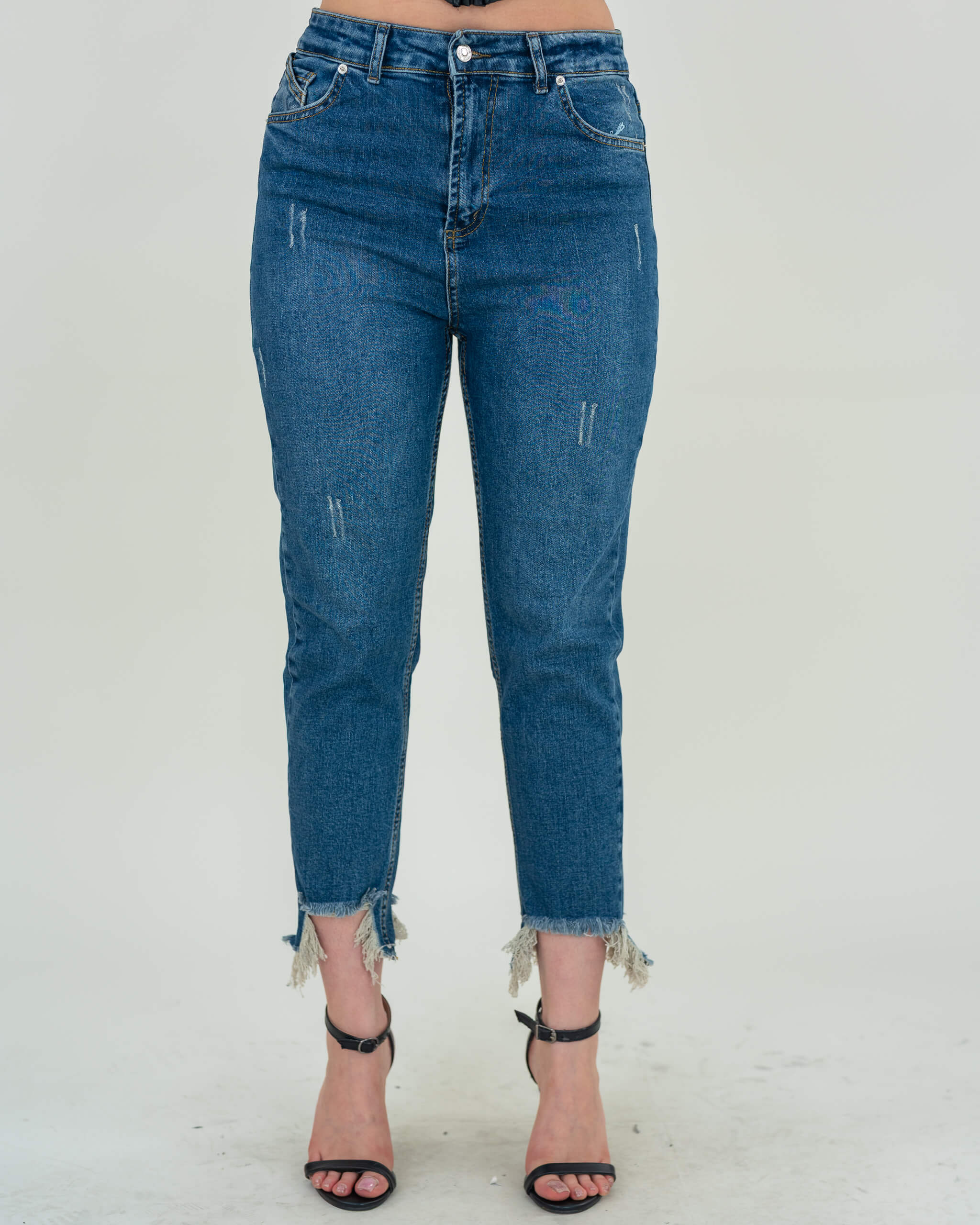 جينز سلم مام بمقاسات كبيرة يتميز بتصميم عصري ومميز مهدب أنيق في الأسفل، يضيف لمسة جريئة لإطلالتك اليومية.