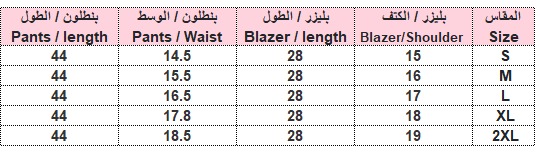 يتكوّن من جاكيت (بليزر) وبنطال بتصميم عصري يبرز القوام ويمنحك حضورًا مميزًا.