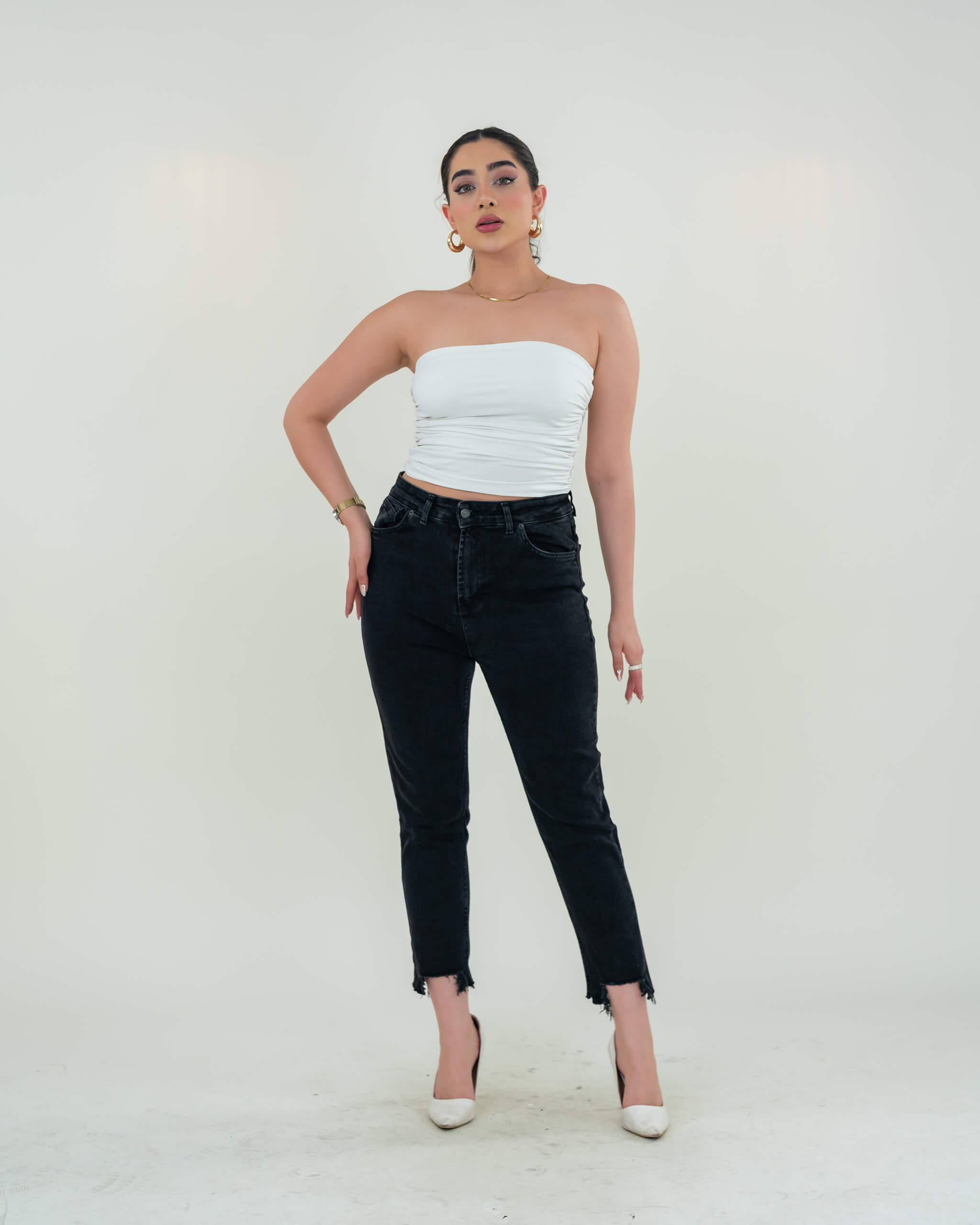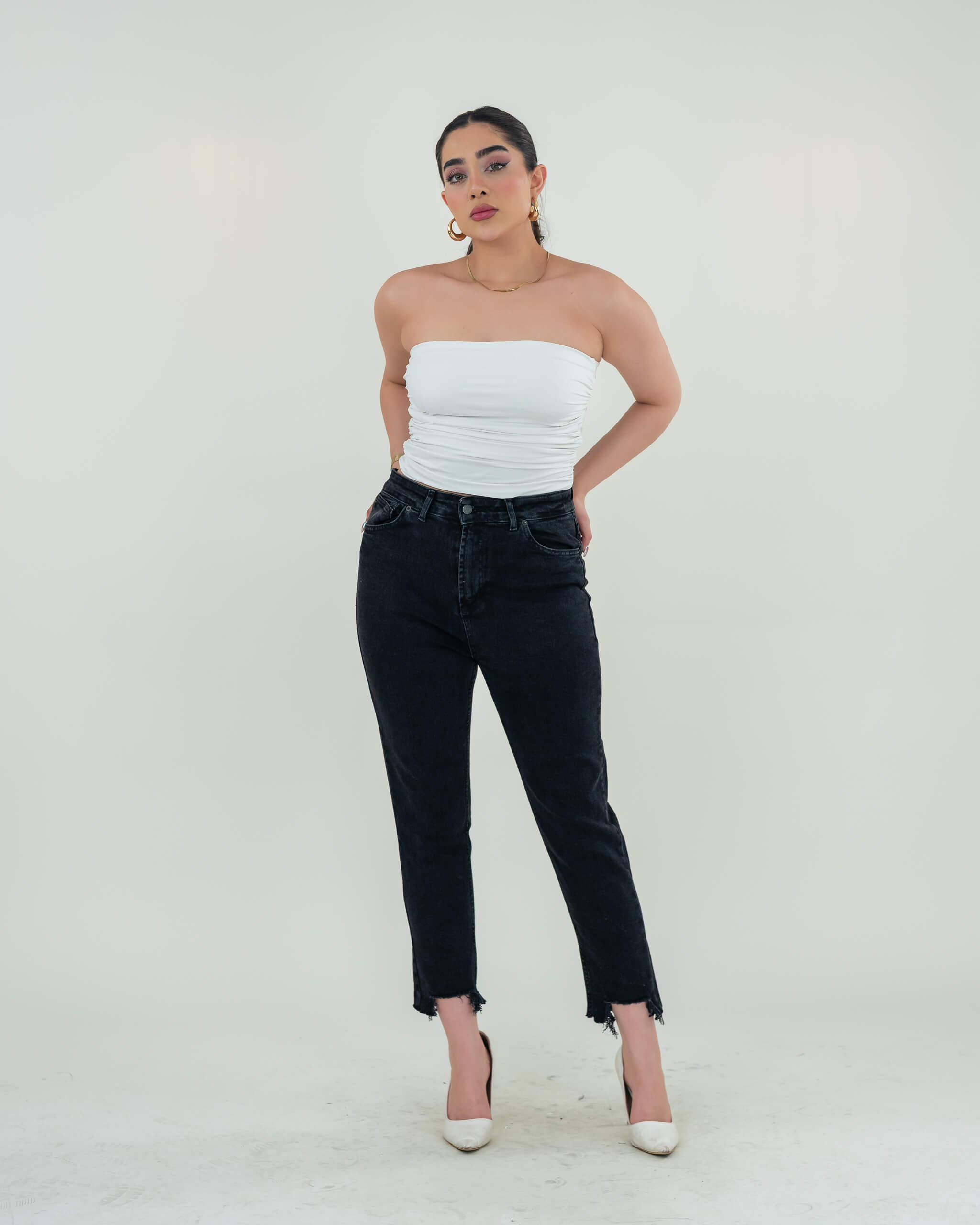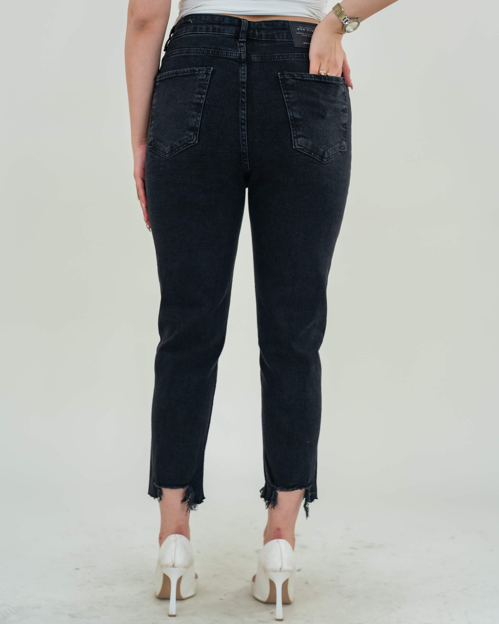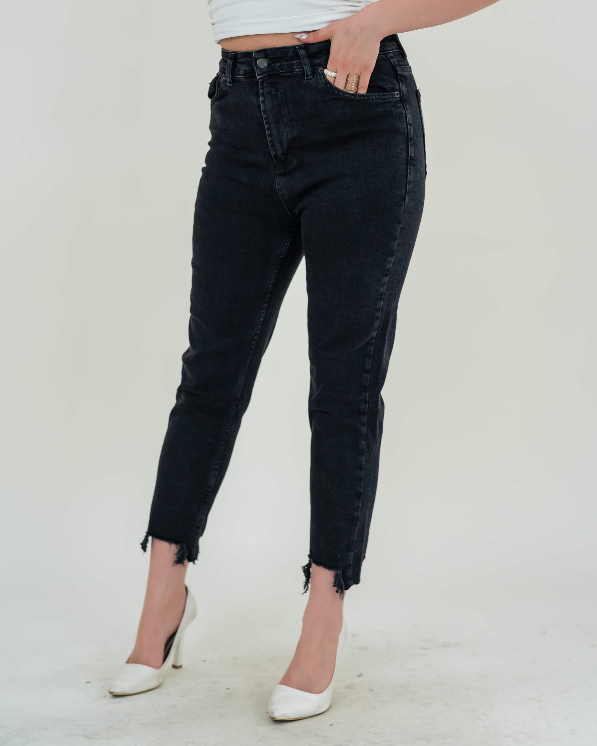 Women’s Plus Size Black Mom Fit Jeans with Frayed Hem