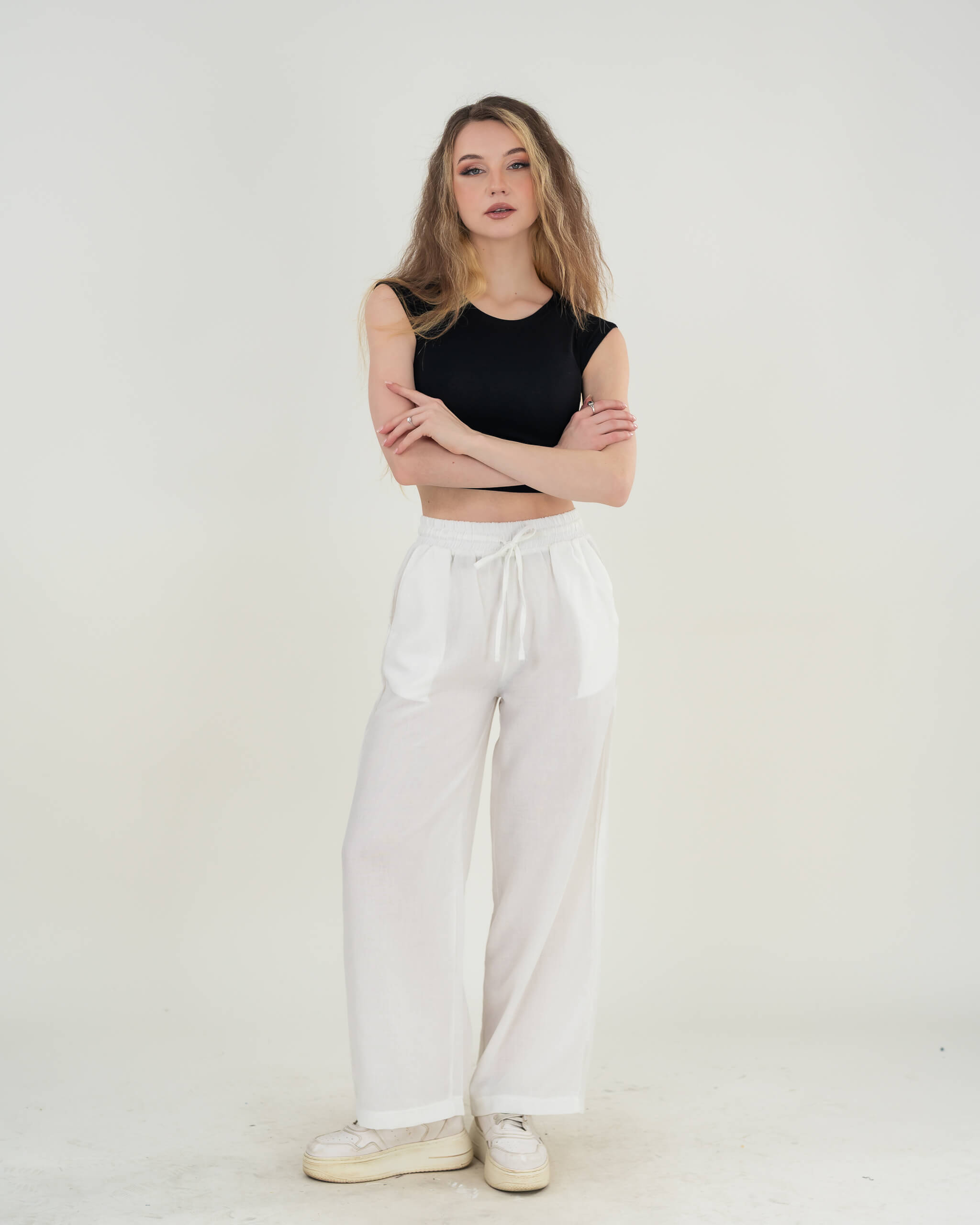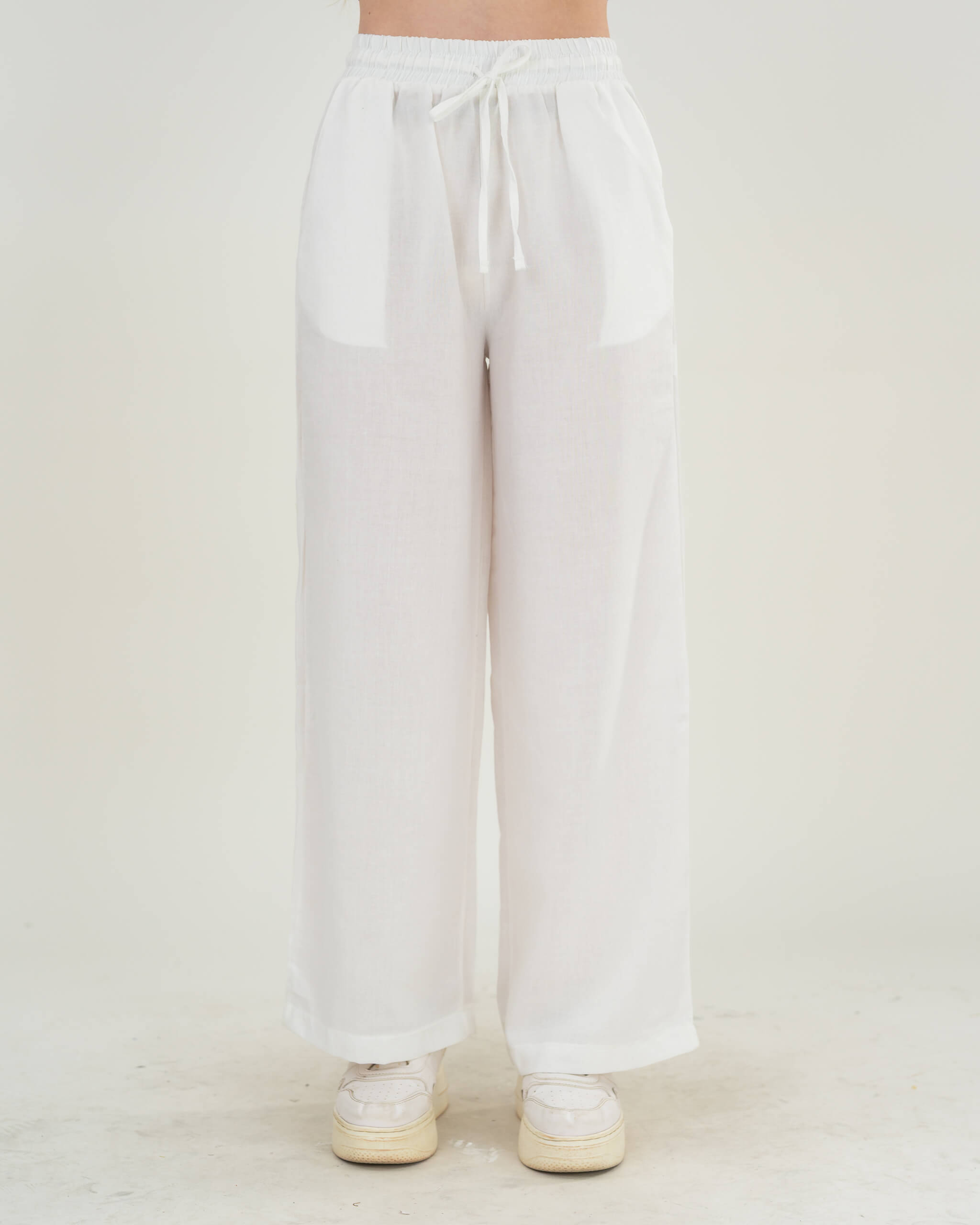 Women’s Wide Cotton Linen Pants with Waist Tie